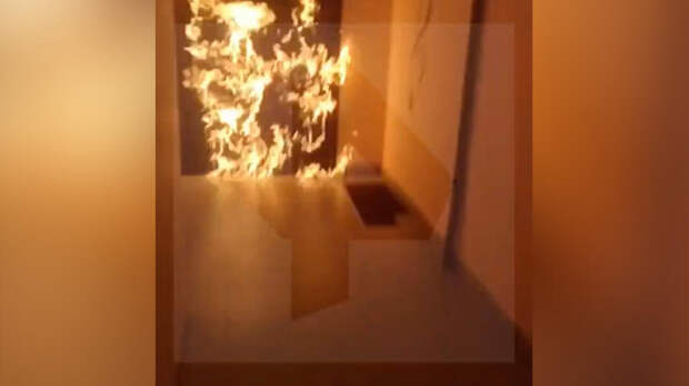 На ролике видно, как молодой человек обливает дверь горючей жидкостью и поджигает.