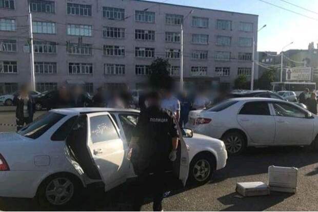 В Сети публикуют первые кадры с места стрельбы в Уфе, где мужчина застрелил молодого человека и ранил девушку.