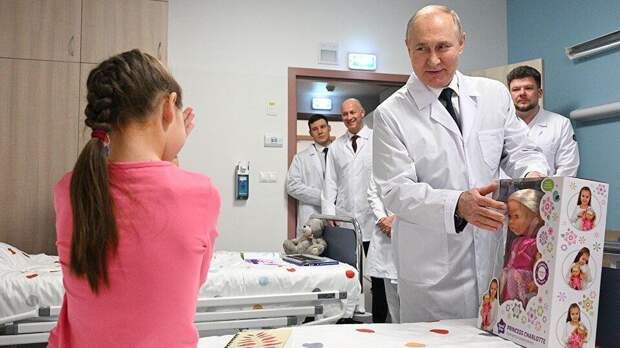 Президент России Владимир Путин во время визита в Национальный медицинский исследовательский центр детской гематологии, онкологии и иммунологии имени Дмитрия Рогачева в Москве подарил говорящую куклу одной из пациенток больницы – девочке Еве. Об этом она рассказала РЕН ТВ.