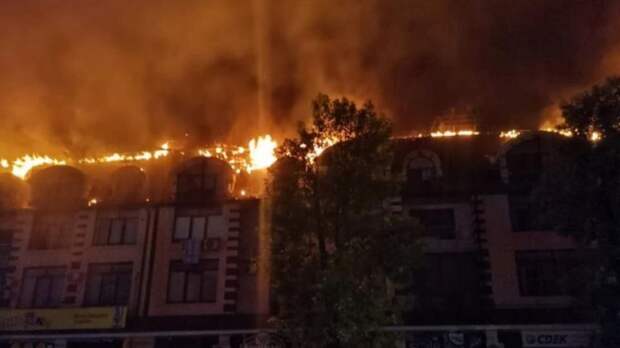 В Горячем Ключе продолжает полыхать пятиэтажное здание на улице Ярославского. По словам очевидцев, с крыши во время тушения сорвался сотрудник МЧС.