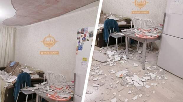 В квартире новостройки в Красноярске рухнувший потолок едва не покалечил семью.