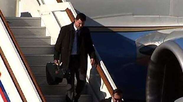 Накануне, во время прилета госсекретаря США Джона Керри в Москву, в объективы телекамер попал член американской делегации с гитарным футляром в руках.