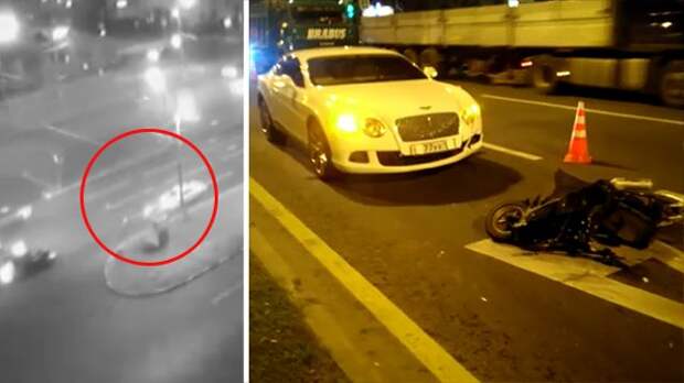 В распоряжении РЕН ТВ появилось видео с камер видеонаблюдения, которые запечатлели момент аварии с участием Bentley и мотоцикла.