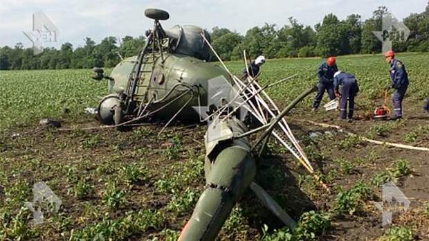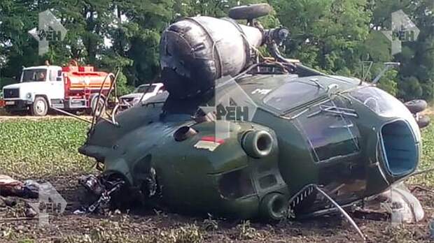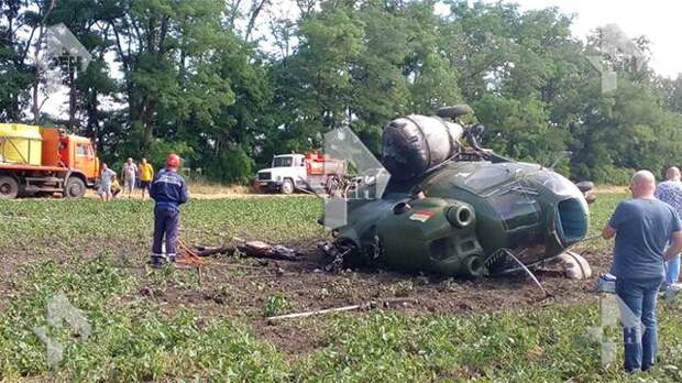 Как видно на опубликованных кадрах, в результате крушения оторвало хвостовую часть вертолета.