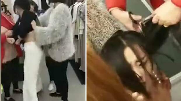 В Китае разъяренная женщина напала на любовницу своего благоверного прямо в магазине одежды.