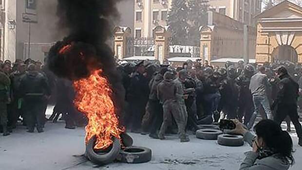 При этом они мешали тушить их. Сейчас на месте беспорядков находятся правоохранители и военные.Сегодня у здания администрации президента произошли столкновения между активистами "Автомайдана" и силовиками. Участники протестной акции требовали встречи с президентом страны Петром Порошенко. На покрышках, которые они сжигали, были наклеены фотографии главы Украины.