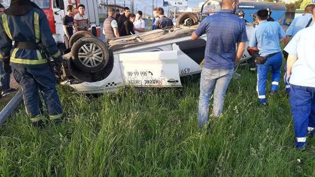 В Санкт-Петербурге перевернулся автомобиль такси. Фотографии с места происшествия распространились в социальных сетях.