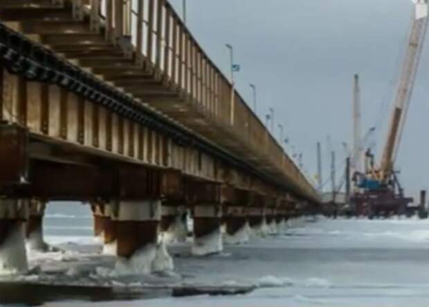 Толщина льдин достигает 10 сантиметров. Однако опоры моста рассчитаны даже на большие нагрузки. Такой же запас прочности был заложен и в проекты временных сооружений. Как доказательство, строители моста выложили видео работ в интернет.
