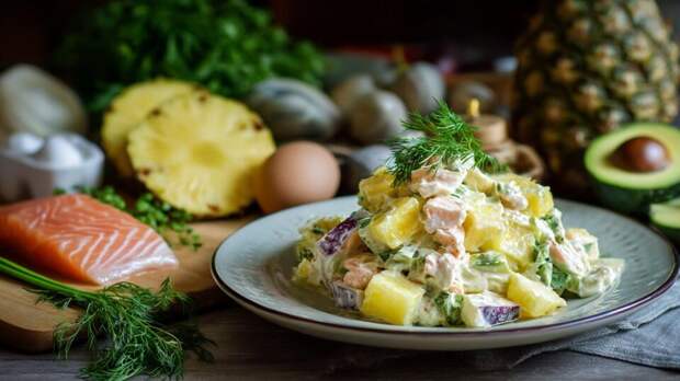 Оливье с ананасом и копченой курицей: сладкий акцент