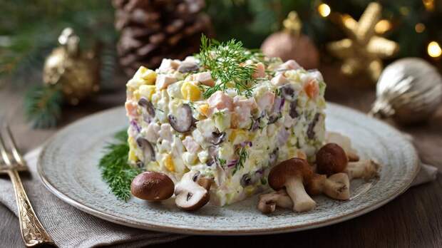 Оливье с жареными грибами: насыщенное и сытное блюдо