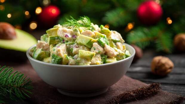 Еще один вариант для тех, кто следит за питанием, – оливье с курицей и авокадо. Вместо колбасы и огурцов используем куриное филе и авокадо, что придает салату легкость и кремовую структуру. Такой вариант будет более полезным и вкусным.
