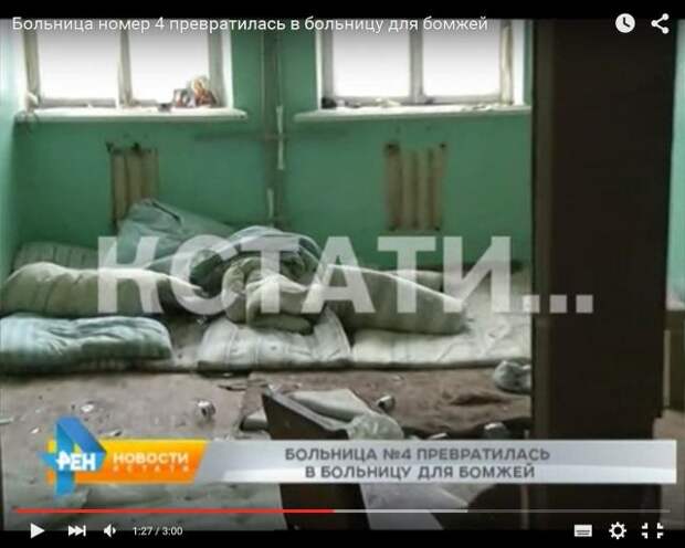 Больница для бомжей появилась в Нижнем Новгороде - в нее превратилась городская больница номер 4 в Канавинском районе. В мае прошлого года, по решению областного минздрава ее в экстренном порядке закрыли - здание обветшало настолько, что пациентов из-за угрозы обрушения эвакуировали в другие лечебные учреждения а персонал перевили в другие больницы.