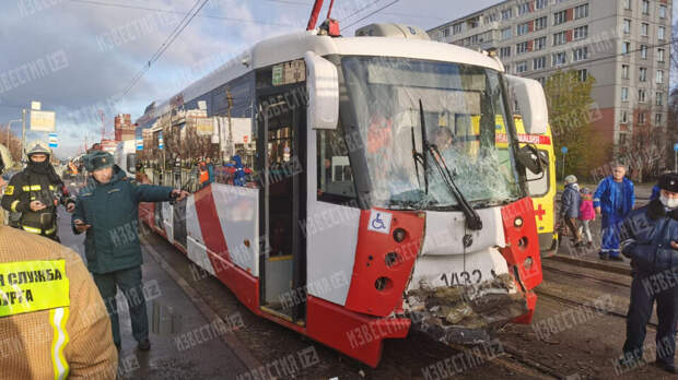 В Санкт-Петербурге на Бухарестской улице столкнулись два трамвая пересекающихся маршрутов.