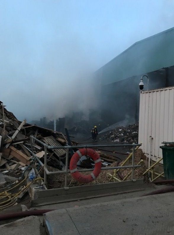 По имеющейся информации, огонь разыгрался на складе, где находятся примерно 100 тонн различных отходов и производственного оборудования.