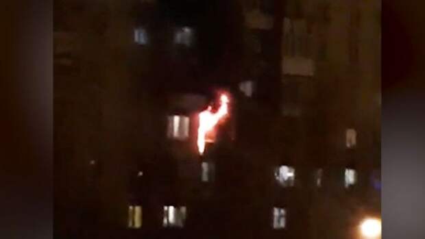 На кадрах видно, как огонь полыхает из окна квартиры.