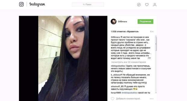 "Я честно не понимаю, в чем прикол такого "сериала" обо мне, как будто других проблем в стране нету. Каждый день убийства, аварии, я всего лишь не уследила за штрафами, которые приходят на адрес, где не живу уже 4 года. Всего лишь штрафы, которые есть у каждого, кто водит авто. Почему меня так?" – написала "мажорка" в Instagram.