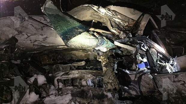 Ранее РЕН ТВ публиковал эксклюзивные фото с места столкновения минивэна "Тойота" и автомобиля "Вольво" с прицепом, в результате которого погибли 7 человек – водитель и пассажиры "Тойота".