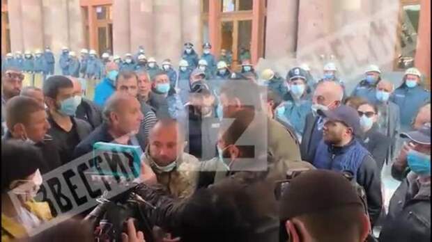 МВД Армении выставило оцепление возле дома правительства в центре Еревана. Напомним, там проходят протесты после заключения соглашения о перемирии в Нагорном Карабахе.