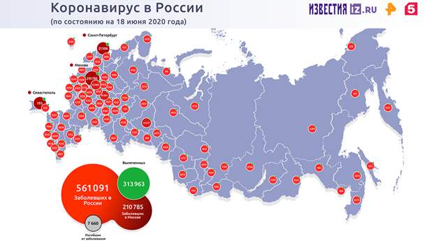 По последним данным, в России выявлен 561 091 случай заболевания. Количество летальных исходов — 7660. Выздоровело уже больше половины пациентов — 313 963 человека.