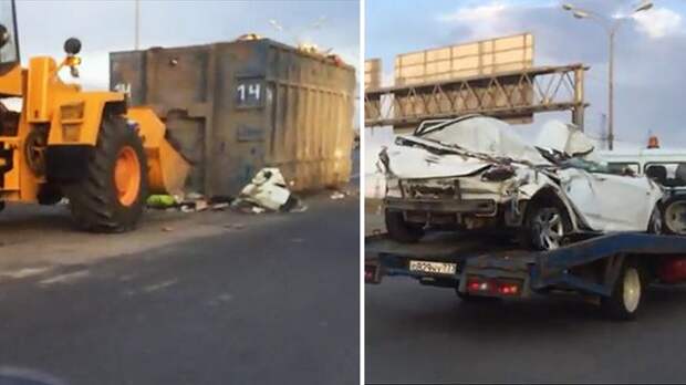 "Легковушка" в результате ЧП превратилась в груду металлолома, засыпанного мусором.По предварительным данным, водитель сам протаранил мусоровоз. Устанавливаются все обстоятельства инцидента.