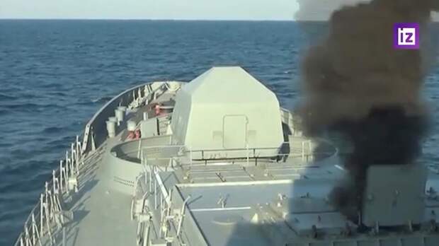 Минобороны России показало кадры пуска крылатых ракет "Калибр" с фрегата Черноморского флота. ВС РФ выполнили залповый пуск четырех ракет из акватории Черного моря.
