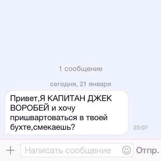 "Привет, я Джек Воробей, и хочу пришвартоваться в твоей бухте, смекаешь?" – сказано в сообщении креативного юноши.