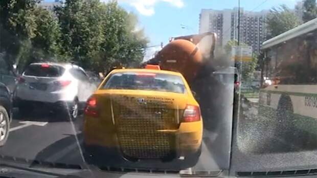 На севере Москвы ассенизаторская машина, наполненная городскими нечистотами, внезапно "взорвалась" прямо во время движения на севере Москвы. Фонтан из жидких отходов хлынул на пассажирский автобус и залил улицу, где произошло необычное ДТП.