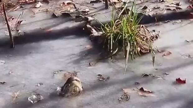 В национальном парке Shallotte River Swamp Park, расположенном в американском штате Северная Каролина, вместе с водой замерзли и обитающие там крокодилы.