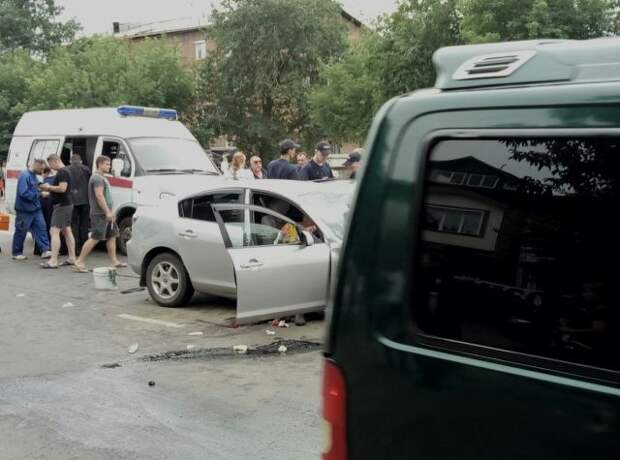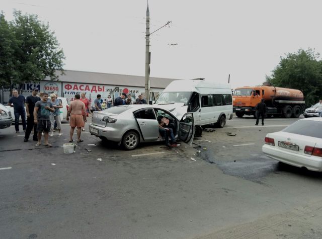 Напомним, как сообщалось ранее, эта авария произошла сегодня днем на улице Рабочего Штаба. Предварительно, микроавтобус "Фиат" и легковушка "Мазда" столкнулись лоб в лоб.