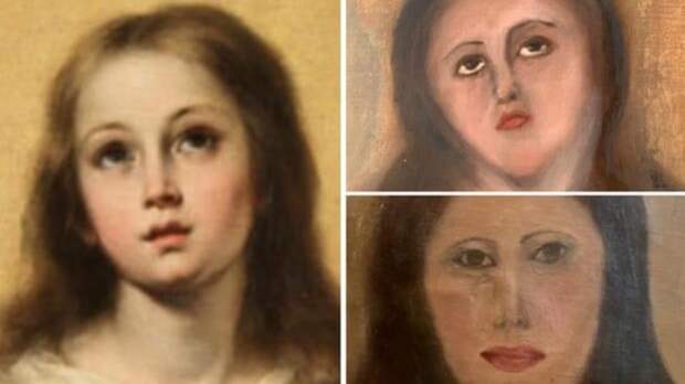 Простая косметическая реставрация убила произведение искусства. В Валенсии коллекционер отдал на чистку копию знаменитого полотна Мурильо. И вот во что превратилось лицо Девы Марии - судя по всему, химический раствор оказался слишком сильным и стер краску.