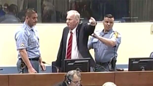 Как видно на кадрах, Младич встал во время судебного заседания и стал кричать.