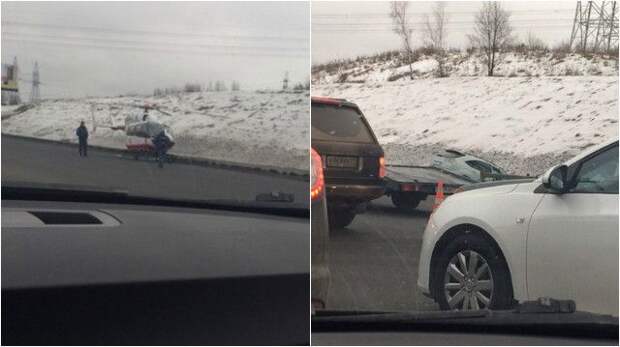 На место ДТП действительно прибывал вертолёт, но помощь никому не понадобилась, данных о пострадавших нет.