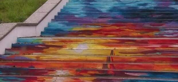 25 часов работы и лестница в парке зеленый остров заиграла новыми красками. Омская художница Екатерина Седымова преобразила спуск в зоне отдыха в рамках социальной программы по благоустройству города. Что именно появится на ступеньках, омичи решали самостоятельно путем голосования в интернете. В конкурсе участвовало три композиции: дерево, радуга и парусник на закате.