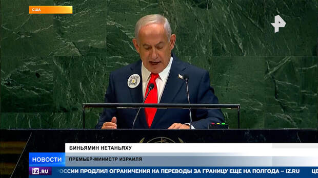 Когда Нетаньяху вышел к трибуне, половина делегаций покинула зал, кто-то свистел. На лацкане пиджака – QR-код. Если навести смартфон, переводит на сайт о преступлениях ХАМАС 7 октября 2023. В своей речи Нетаньяху сходу отверг резолюцию ООН еще 1947 года о создании палестинского государства.