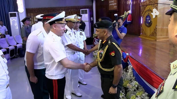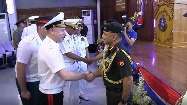 В крупнейшем портовом терминале Мьянмы на реке Янгон Тилава стартовали совместные с Россией военно-морские учения "Марумекс-2025". С приветственным словом выступил заместитель главнокомандующего ВМФ по материально-техническому обеспечению, генерал-лейтенант Алексей Кияшко.