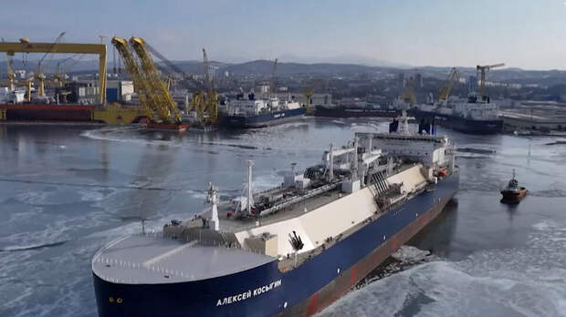 Первый российский ледокольный танкер-газовоз "Алексей Косыгин", построенный на судостроительном комплексе "Звезда" (оператором проекта выступает ПАО "НК "Роснефть"), вышел из бухты Большой Камень в свой первый рейс по Северному морскому пути. Судно передано заказчику — ПАО "Совкомфлот" — после успешного завершения ходовых и газовых испытаний.