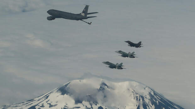 "NORAD направило разведывательный самолет E-3 Sentry, четыре истребителя F-16 Fighting Falcon и четыре самолета-заправщика KC-135 на перехват самолета, который оставался в международном воздушном пространстве", – говорится в материале журнала Newsweek.