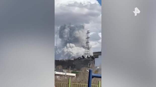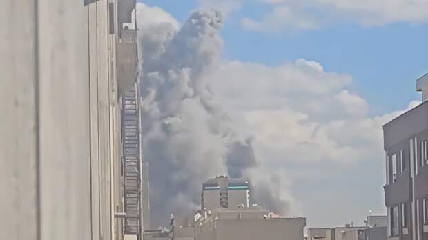 На публикуемой записи видно, что над местом удара в небо поднимается огромный столб черного дыма.