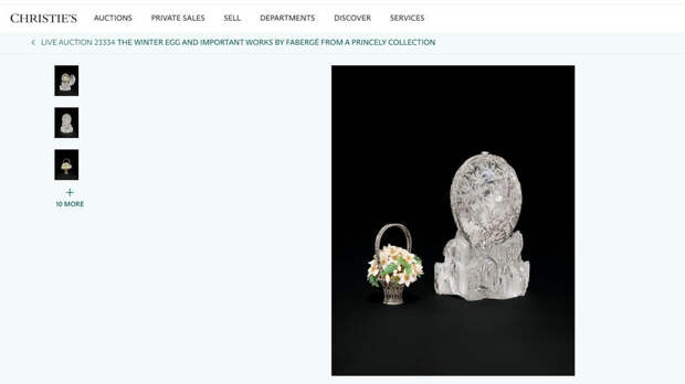 www.christies.com/christies Цена за "зимнее" яйцо обогнала предыдущий рекорд в $18,5 млн. Он был установлен на аукционе Christie's в 2007 году, сделанного для семьи Ротшильдов.