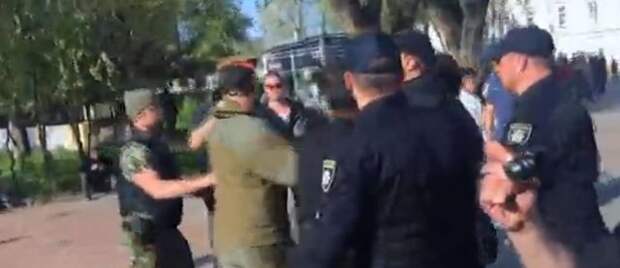 Драка руководителя областной ячейки "Правого сектора" Сергея Стерненко с одним из участников траурного шествия в Одессе попала на видео. Радикалы пришли на Куликово поле сорвать мероприятие.
