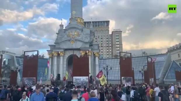 В Киеве проходит митинг в поддержку протестующих в Белоруссии. Об этом сообщает RT.