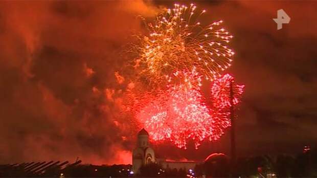 Этой ночью под залпы советских пушек "ЗиС" на Поклонной горе запустили свыше 2 тысяч фейерверков.