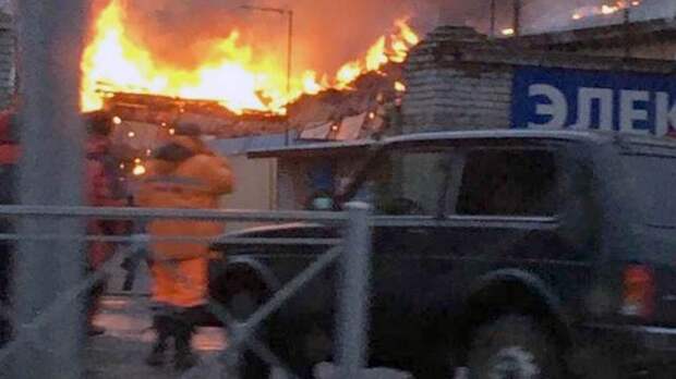 Кровля горящего в Санкт-Петербурге автосервиса обрушилась на площади 300 квадратных метров. Как сообщили в региональном главке МЧС, огнеборцам удалось локализовать пожар.