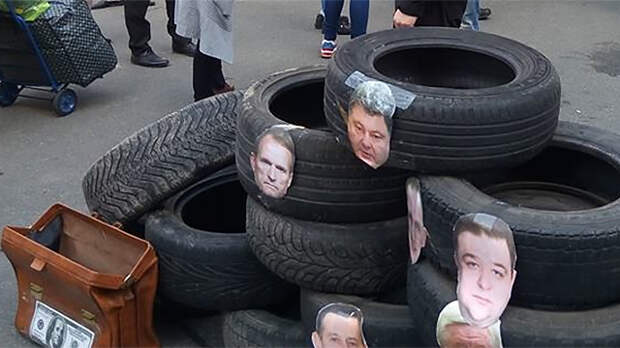 На покрышках, которые активисты жгли у здания администрации президента в Киеве, были наклеены фотографии Петра Порошенко, сотрудников СБУ и других представителей власти. Протестующие требовали встречи с главой государства, а также люстрации "преступной власти".