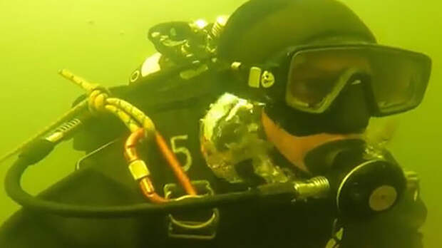 Пока говорим с одним из ОМОНовцев его коллега тщательно исследует дно. Задача – найти снаряд времен Второй мировой войны. На выполнение уходит 10 минут. Мина обнаружена, взрывателя нет – значит, боеприпас относительно безопасен – можно поднять его со дна и передать в руки сапера.