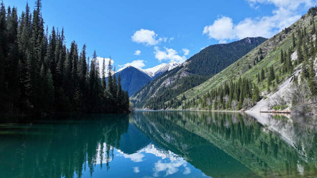 Кольсайские озера, расположенные на высоте до 2500 метров, известны своей кристально чистой и холодной водой, температура которой даже летом не превышает 15 градусов.