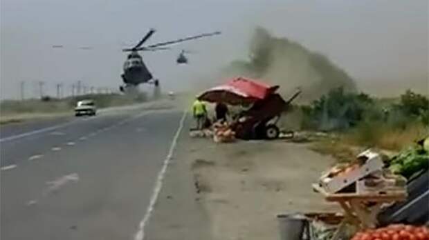 Очевидцы сняли на видео, как украинские вертолеты Ми-8 распугали людей на рынке на трассе в Мелитопольском районе Запорожской области.