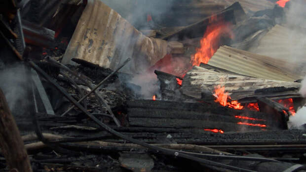 К месту возгорания прибыли несколько пожарных машин и скорой помощи. Весь двор залили водой, огонь был такой силы, что сотрудникам пожарной безопасности пришлось тушить его и с территории соседнего дома. Они боролись с пожаром более трех часов. Самого хозяина дома вытащили из огня и увезли в больницу. По словам мастера, в здании он находился не один.