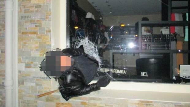 О необычном инциденте сообщили представители жандармерии в своем микроблоге в Twitter. На фото видно, что грабитель попытался выбраться через витрину.
