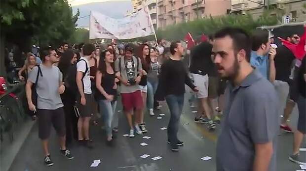 В Афинах сотни митингующих пришли к зданию представительства Евросоюза. Они попытались повесить плакат с надписью: "Нет мерам жесткой экономии". Но в дело вмешалась полиция.